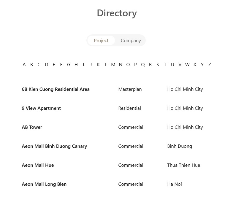 Project & Company List