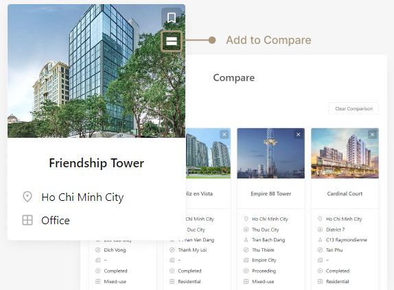 Add projects to compare side-by-side directly from the search page or from the comparison page