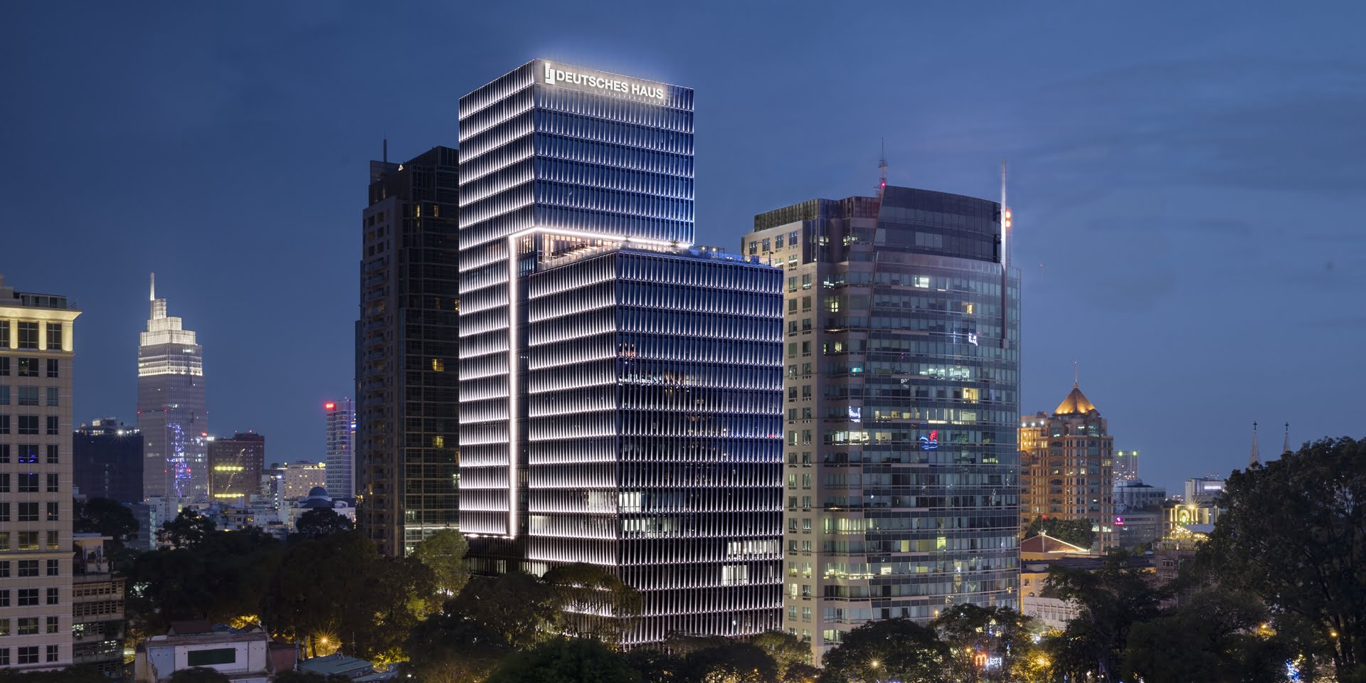 Deutsches Haus, located in Ho Chi Minh City, Vietnam, is a prominent symbol of German-Vietnamese cooperation and economic ties. Opened in 2017, this 25-story building serves as a hub for German businesses, cultural organizations, and diplomatic missions in Vietnam. The modern glass and steel structure, designed with energy efficiency in mind, houses the German Consulate General, the German Business Association, and various German companies operating in the country. As a center for trade, culture, and diplomacy, Deutsches Haus plays a significant role in strengthening bilateral relations between Germany and Vietnam, while also showcasing German engineering and architectural expertise in the heart of one of Southeast Asia's fastest-growing economies.